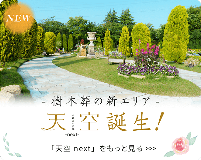 天空を象徴する特別な空間。個性的なモニュメントが並ぶ芝生の通路で、大切な方の存在を感じられます。美しい花々とバラに囲まれた故人との静かなひとときをお楽しみください。