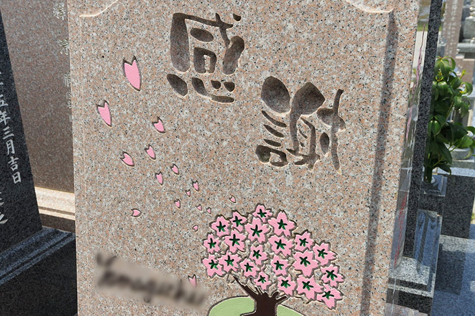 父が開花を心待ちにしていた桜の花も墓石に彫刻していただき、ありがとうございます。スタッフの方たちも親切で、本当にここに決めて良かったね、と母と話しています。
